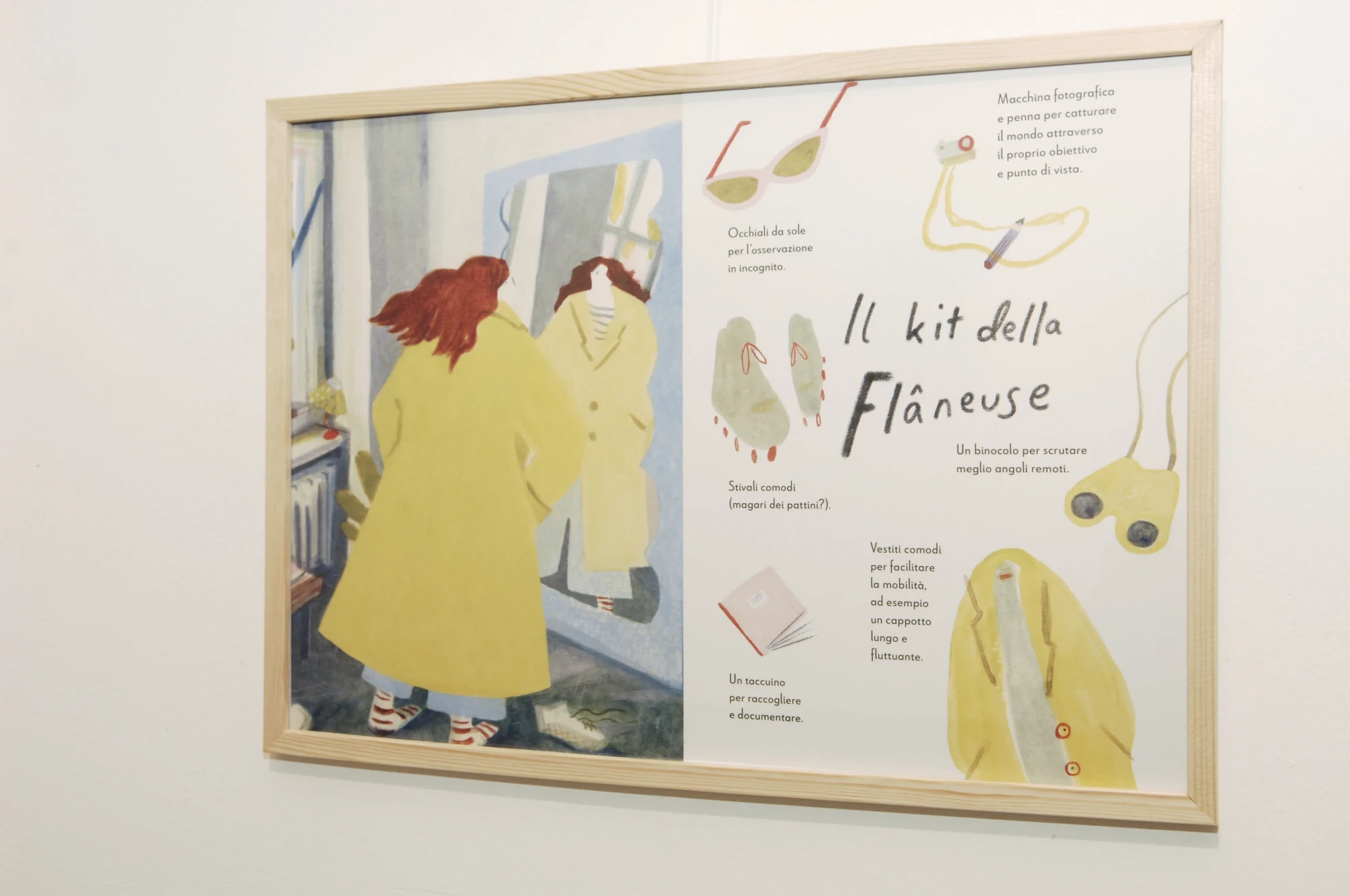 In der Ausstellung „Flâneuse!“ zeigt die Illustratorin Andrea Wandinger ihre aktuelle Publikation (erschienen bei Raum Italic und Corraini Edizioni, 2024):