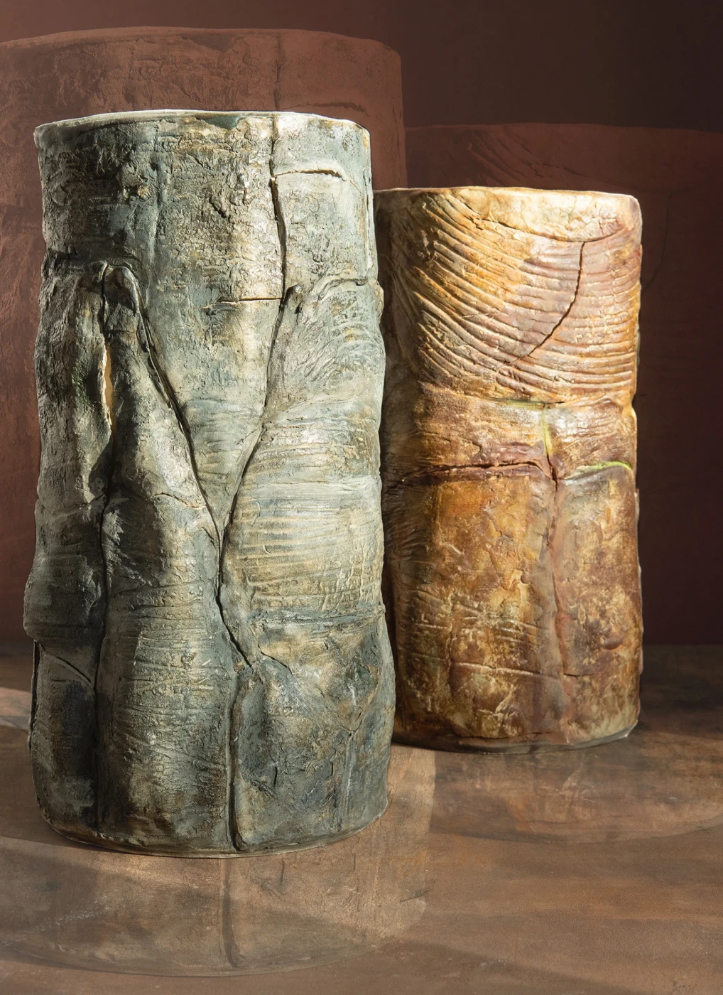In ihren neuesten Arbeiten beschäftigt sich Carla Binter mit charaktervoller Gefäßkeramik. Die eigenwilligen Oberflächen zeigen zerklüftete, erdnahe Oberflächen mit malerischer Textur und gestischen Strukturen. Spannungsvolle Kontraste, die von Ruhe und Bewegung zeugen. Ihre Inspiration nimmt sie aus der Natur. Diese sie faszinierenden Impressionen bringt Carla Binter mit Leidenschaft auf ihren Gefäßen und Wandbildern zum Ausdruck.