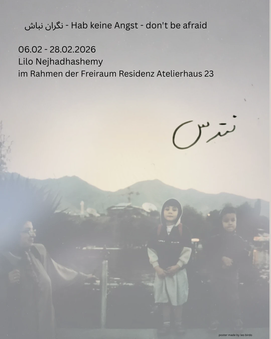 Die Beobachtung „نگران نباش, hab keine Angst, don’t be afraid“ ist eine mehrsprachige multimediale Ausstellung zu dem Erleben von Polikrisen in Deutschland und der Welt. Fotos, Lyrik und eine Videoinstallation greifen Themen wie Verbundenheit, Migrationsdruck und das in Bewegung sein auf. Ergänzt wird die Ausstellung durch folgende Veranstaltungen:
